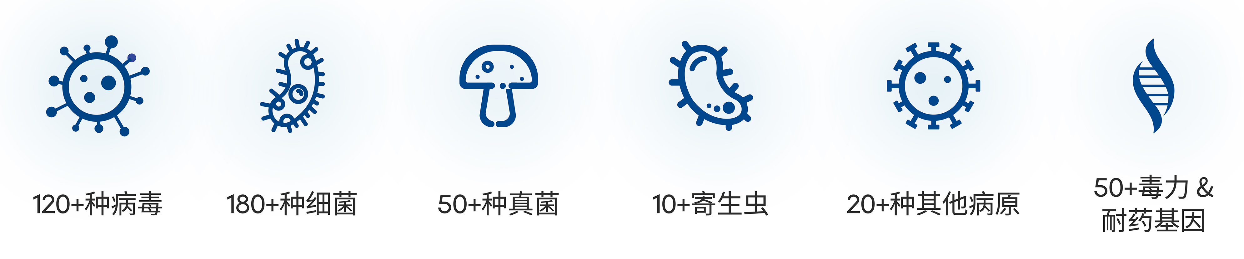 迪赢病原体靶向测序方案采用超多重PCR+二代测序技术,针对目标病原微生物基因序列,设计特异性引物。迪赢全新推出PathoSeq 450病原库包含临床常见的400+种病原体和相关耐药基因,实现全面检测。结合逆转录模块可以实现DNA&RNA病原体共检;同时,高效的逆转录酶和优化的超多重体系,提升检测的灵敏度和准确度。