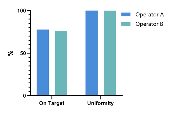 Using gDNA as a sample, an ultrasonic library (dynegene, NL1001) was created for hybrid capture testing of a single sample with different probes (82kb, 1.6Mb, 42.5Mb). The results show that the capture efficiency and uniformity are excellent across different panels.